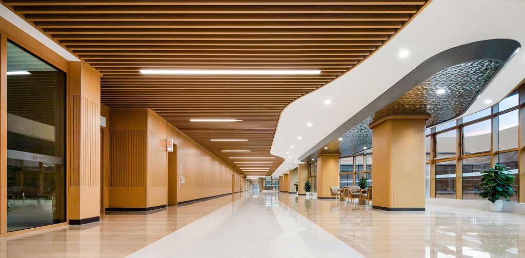 HEYOU Hospital is a large-scale comprehensive medical facility invested by Midea Group and developed in accordance with both China’s Grade A tertiary hospital standards and international healthcare quality systems. For this project, REXIN A-Class Non-Combustible Panels (TAIKA) and fire-resistant HPL were applied across public areas and patient wards.