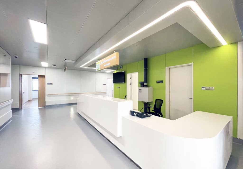 The panels provide fire safety, durability, and easy maintenance, making them ideal for high-traffic healthcare environments. Their smooth, hygienic surfaces allow frequent cleaning and disinfection, ensuring a safe and reliable interior environment. Neutral and calming finishes contribute to a comfortable and healing atmosphere for patients and staff.